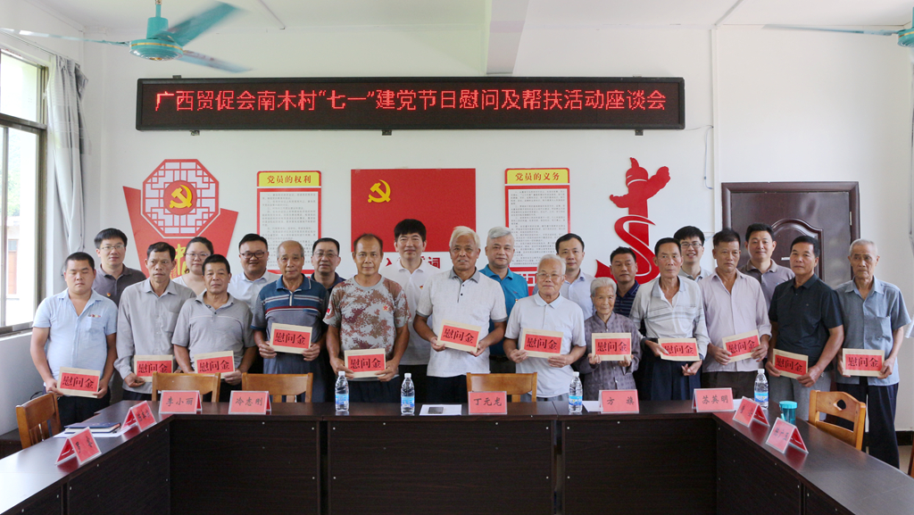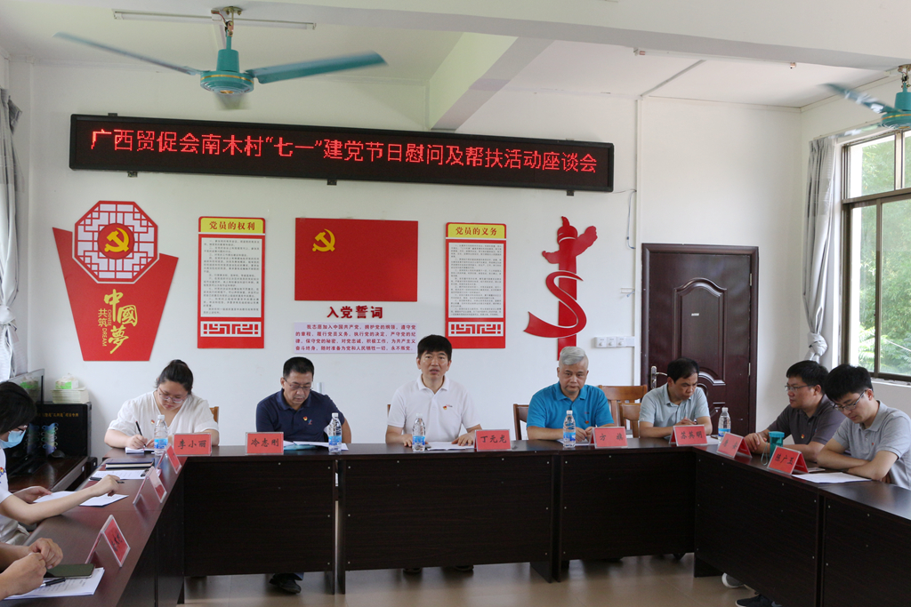 6月28-29日,广西贸促会党组成员、副会长丁元龙一行赴我会定点帮扶的贺州市八步区贺街镇南木村开展“七一”建党节日慰问及帮扶活动。29日上午,丁元龙副会长出席广西贸促会南木村“七一”建党节日慰问及帮扶活动座谈会,听取村集体经济发展、村两委建设等情况汇报。