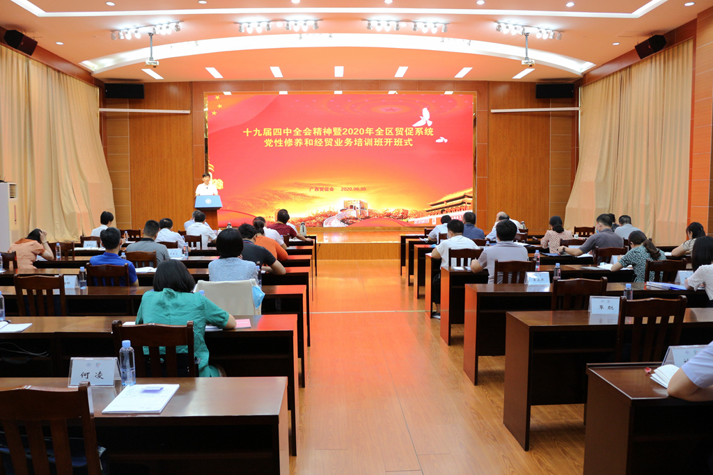 为全面学习贯彻党的十九届四中全会精神,为全区贸促系统干部搭建政策学习和业务提升的学习平台,我会于6月30日-7月4日举办十九届四中全会精神轮训暨2020全区贸促系统党性修养和经贸业务培训班。此次培训班以党性教育为主题,深度融合党建工作和业务工作,采用“网络视频+专题授课+区内现场教学”方式开展,对增强全区贸促系统合力、提升贸促工作服务水平起到了积极推动作用。