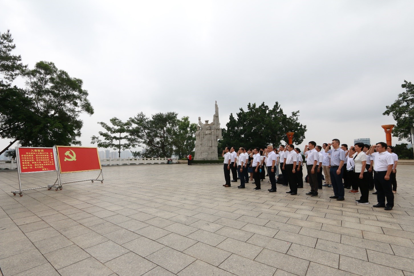 培训班学员向百色起义纪念碑敬献花篮、重温入党誓词