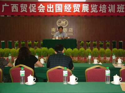 8月3日,广西贸促会在南宁举办出国经贸展览培训班。邀请中国贸促会展览管理办公室副主任徐晨滨、展览管理办公室处长沙克仲、中国贸促会业务二处处长郭英会就新颁布的出国经贸展览管理办法、出国经贸展览理论和实务对我区国有大中型企业、民营外向型企业、展览公司和我会会员企业、委员单位进行培训。学员们在培训班上了解到了国际上最新、最权威的经贸展览信息,了解了我国有关出国经贸展览的管理规定,对利用参加在国外举办的国际性展览会这一最有效、成本效益最佳的方式开拓国外市场有了具体的认识,培训达到了预期的效果。
