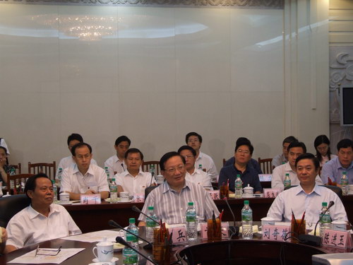 广西贸促会会长范晓莉向国务委员唐家璇汇报商务与投资峰会的筹备情况