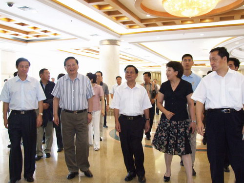 8月6日上午,国务委员唐家璇在自治区党委书记刘奇葆、自治区主席陆兵等陪同下,视察了广西“三会”筹备工作