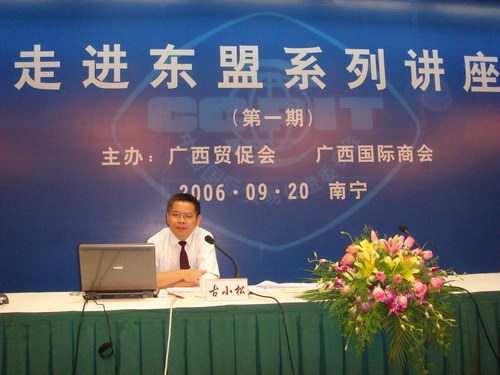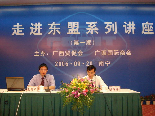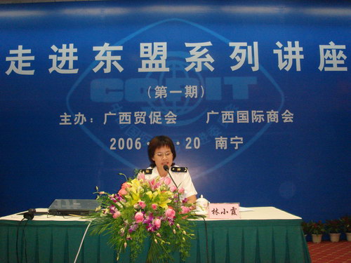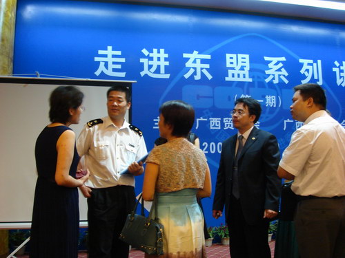 第一期讲座安排的是东盟国家概况及越南专题,主要由广西社会科学院古小松副院长介绍“东盟区情及其市场的开拓”,越南驻南宁总领馆陈维海总领事和范清平领事介绍越南国家的经贸投资环境、政策和商机,南宁海关关税处处长姜小丰、广西出入境检验检疫局法综处林小霞同志分别对广大企业关心的关税、检验检疫方面的问题进行讲解。讲座还安排了对话环节,加强演讲者与听讲人员的交流,增强了讲座的实效性。