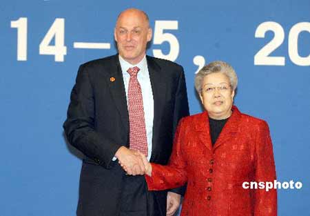 中国国家主席特别代表、国务院副总理吴仪和美国总统特别代表、财政部长保尔森共同主持此次对话会