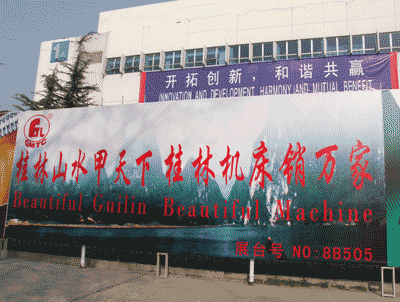 图为桂林机床股份有限公司在开幕典礼主席台左侧主要通道边上的宣传彩幅。