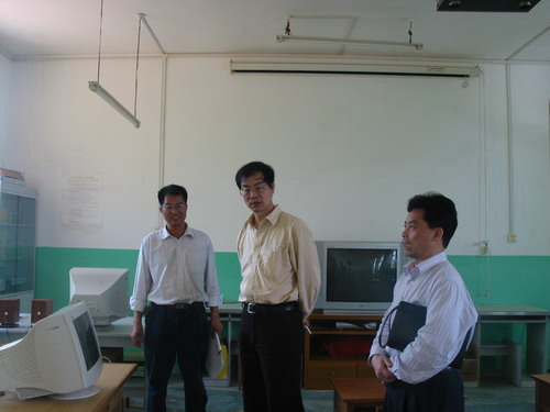 孙副会长在李浩基局长和陆文忠校长陪同下参加电教室