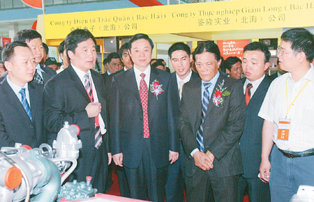 5月11日上午,2007中国广西(越南)商品博览会,在河内讲武展览中心广场隆重开幕。自治区党委书记、自治区人大常委会主任刘奇葆,越南政府办公厅主任、越中友好协会主席段孟交等中越贵宾出席开幕式,并参观了商品博览会。