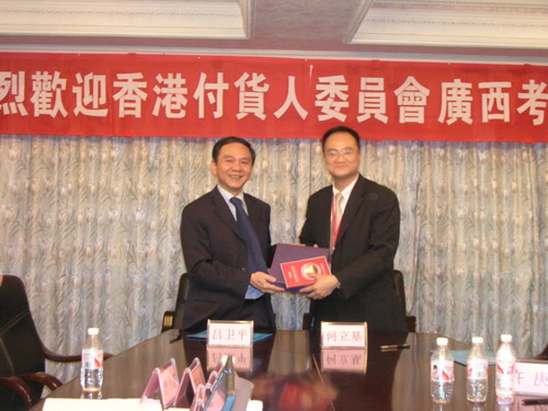 5月16日下午,我会吕卫平副会长会见了以香港付货人委员会执行总干事何立基为团长的广西考察团一行10人。