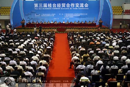 广西新闻网玉林9月2日讯(记者叶焱焱 梁凯昌 麦一帆)9月2日,第三届桂台经贸合作交流会在广西玉林召开。海峡两岸和桂台两地的企业界及各界代表云集玉林,共谋发展,共创双赢。