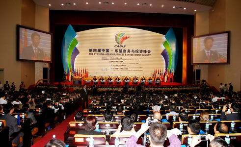 第四届中国-东盟商务与投资峰会10月28日上午在广西人民会堂隆重开幕。中国国务院副总理曾培炎和东盟国家领导人文莱王储比拉、老挝总理波松、越南总理阮晋勇等出席峰会开幕式并发表演讲。在主席台就座的还有:中共广西自治区党委书记刘奇葆、广西自治区主席陆兵、中国商务部副部长高虎城、东盟秘书长王景荣。开幕式由中国国际贸易促进委员会副会长于平主持。