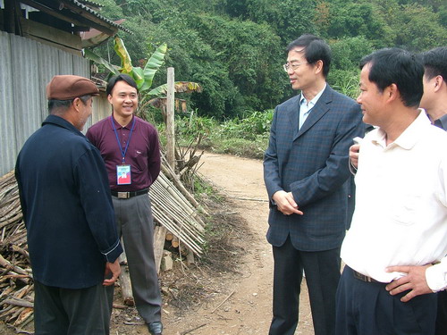孙副会长在扶贫村考察时与村民亲切交谈(左二为友谊镇党委覃兴广书记)