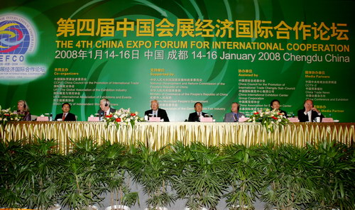 一年一度的国际会展界盛会—第四届中国会展经济国际合作论坛(CEFCO2008)暨第九届中国国际展览和会议展示会(展中展)于1月14日-16日在成都娇子国际会议中心举办。这是该论坛继在北京、广州、上海三个国内核心会展城市举办后,首次移师中国内地城市。在“汇聚成长的力量”这一主题下,来自全球18个国家和地区的550余位会展业人士进行了对话交流。中外会展业领袖畅谈发展,对中国会展新兴城市、新兴力量的成长潜力表现出高度关注。