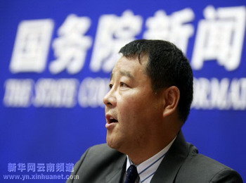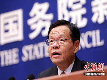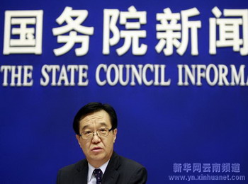 商务部副部长高虎城在发布会上发言