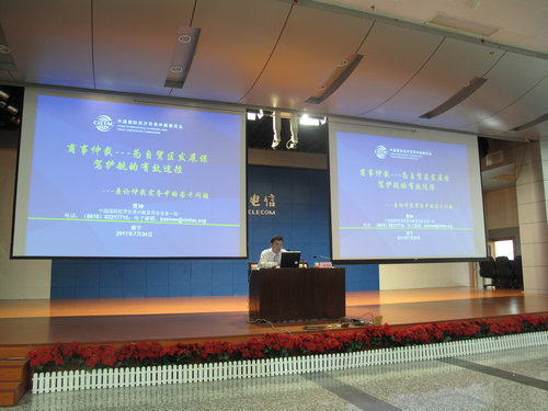 日前,广西贸促会与有关单位联合举办“2011年第二期全区律师远程培训班”,特邀中国国际经济贸易仲裁委员会仲裁业务一处贾珅同志进行题目为《商事仲裁---为自贸区发展保驾护航的有效途径》的专题授课,就是针对我区地处中国-东盟自由贸易区前沿,国际贸易往来频繁的这一特点而举办。本次培训主要介绍了国际商事仲裁及其发展趋势、贸仲的仲裁服务、贸仲仲裁规则与仲裁实务、贸仲仲裁程序、仲裁条款的谈判技巧、结合经典案例向学员普及仲裁条款的谈判技巧、并卓有见解的就如何在仲裁实务发挥肢体语言的作用提出了建设性意见。