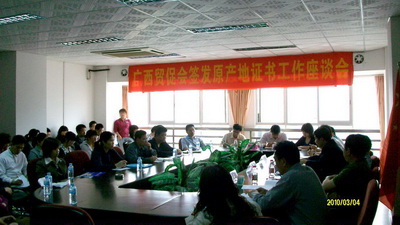 3月4日,自治区贸促会在梧州召开“广西贸促会签发原产地证书工作座谈会”。这次座谈会是通过座谈的形式,宣传东盟自贸区有关优惠政策,鼓励企业用好用足中国-东盟以及其他自贸区关税优惠政策,降低产品成本,拓宽企业发展空间;了解企业对自由贸易区的贸易与签发原产地证情况,对签证工作提出建议和意见,为广西贸促会6月起签发优惠原产地证做好准备。广西三威林产工业公司、桂江造船厂、梧州聚丰贸易公司等26家外贸公司和出口企业参加了座谈会并在会上发表了意见。广西贸促会副会长吕卫平、法律事务部长方旗、梧州市商务局党组书记庄扬、市商务局长宋彤宇、副局长陈剑廷出席了座谈会。2010年1月1日,中国—东盟自贸区正式启动,中国与东盟开始进入“零关税时代”,对梧州市外经贸发展将产生较大影响。吕副会长在会上强调了贸促会要加强为企业服务,使企业充分利用优惠原产地证政策,扩大对外贸易,促进企业发展。会后,广西贸促会赴梧调研组在梧州市贸促支会庄扬会长的陪同下,还前往梧州口岸外贸公司、中船华南船舶机械公司等企业进行了调研。
