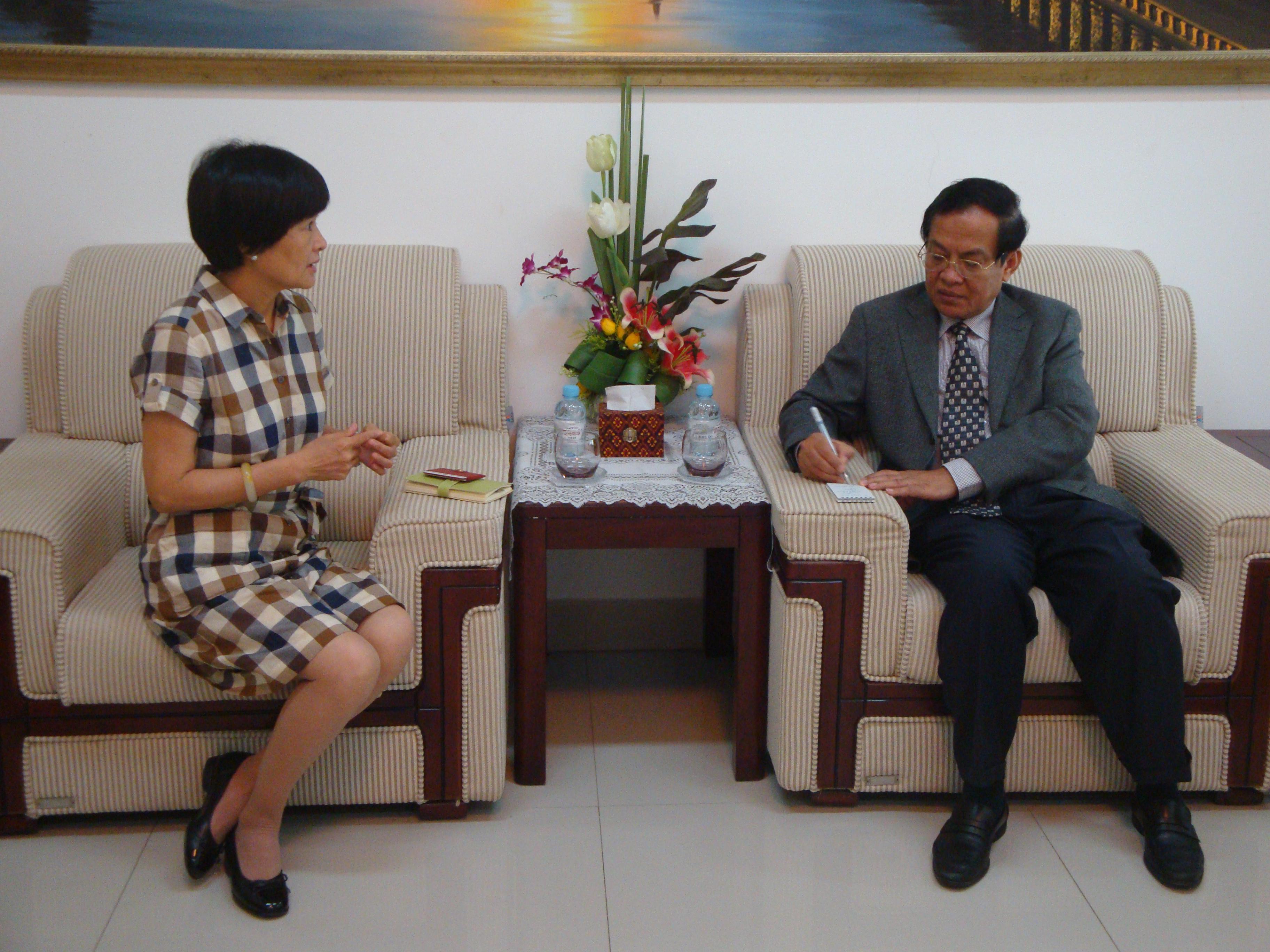 8月6日上午10时,何小玲会长拜访了柬埔寨王国驻南宁总领事馆总领事恩索斐、新任领事Sek Chansangvan。