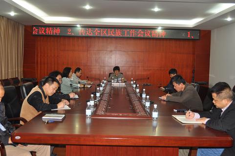 11月3日,我会召开全体人员会议,传达学习全区民族工作会议精神。 何小玲会长传达了自治区党委书记、自治区人大常委会主任彭清华在会上的重要讲话精神,对我会学习、贯彻好全区民族工作会议精神提出了要求。