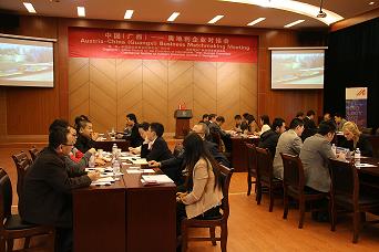 丁元龙副会长在致辞中指出,改革开放以来,广西的基础设施日益完善,已形成航空、高速公路、铁路、海运立体交通,近十年来,广西重点打造对东盟的改革开放,成为中国与东盟经贸合作的重要平台和窗口,广西以及北部湾区域已成为中国经济最具潜力和活力的地区之一。他表示,此次企业对接会是促进双方经贸交流的一个很好尝试,为双方企业提供了面对面交流的机会,增进双方了解,为双方企业寻求合作商机提供了平台,并热忱欢迎奥地利企业家到广西洽谈投资,共创商机,建立长期的友好合作关系。