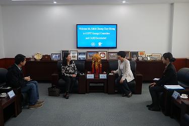 3月17日,新加坡工商联合总会助理秘书长张采虹一行2人拜访中国一东盟商务与投资峰会秘书处何小玲秘书长。