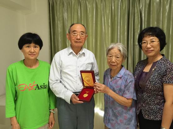 9月1日下午,我会党组书记、会长何小玲看望慰问了我会抗战时期参加革命工作的离休干部沈岳峰同志,详细询问了老人的生活和健康情况,向他致以崇高的敬意和亲切的问候,并将党中央、国务院颁发的中国人民抗日战争胜利70周年纪念章和中央、自治区慰问金送到他手中,祝愿老人健康长寿,生活幸福。