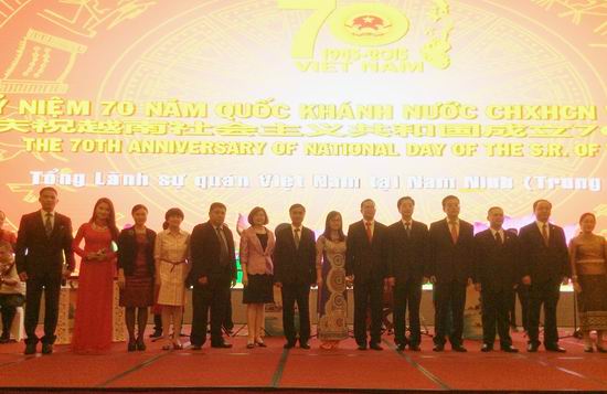 2015年9月1日晚,越南驻南宁总领事馆举办庆祝越南社会主义共和国成立70周年招待宴会,自治区副主席张晓钦出席并致辞。 应越南驻南宁总领事馆总领事范清平的邀请,广西贸促会会长、中国—东盟商务与投资峰会秘书处秘书长何小玲出席了招待宴会。