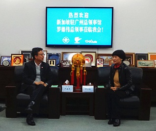 12月10日下午, 何小玲会长在我会会见了新加坡驻广州总领事馆罗德伟总领事一行。