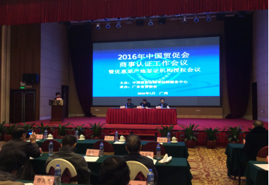 1月21日,2016年中国贸促会商事认证工作会议暨优惠原产地签证机构授权会议在广州召开。中国贸促会副会长尹宗华出席会议并作重要讲话。中国贸促会商事法律服务中心主任徐伟做2015年全国贸促系统商事认证工作报告,副主任闫芸介绍商事认证拓展方案和2016年重点工作计划。会议还进行了先进机构经验交流,开展了商事认证业务研讨。来自全国近100家地方贸促分、支会领导及有关业务部门负责人共计150人参加会议。