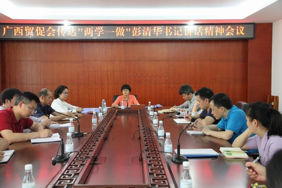 会议认为,在全体党员中开展“学党章党规、学系列讲话,做合格党员”学习教育,是党中央为深化党内教育作出的又一重要部署。要认真学习和深入领会彭清华书记讲话精神,增强抓好“两学一做”学习教育的政治责任感和使命感,切实把思想和行动统一到自治区党委部署和要求上来。各级党员领导干部要带好头、当好标杆、起到示范作用,全体党员要积极参加学习教育,勇于查摆问题,明确整改方向,奋发有为,推进贸促事业大发展。