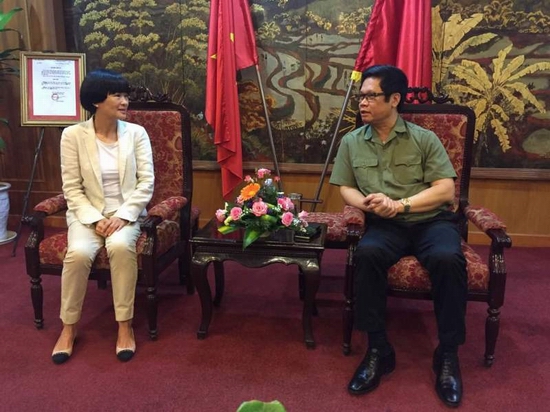 4月27日上午,何小玲秘书长在河内与越南工商会主席武进禄举行工作座谈。何秘书长介绍了第13届中国-东盟商务与投资峰会7项主要活动,希望越南工商会继续组团参加峰会各项活动。武主席赞赏峰会秘书处为推动中越经贸关系所做的努力,表示将积极推动越方领导出席峰会。双方就今年峰会期间合作共办经贸活动深入交换意见。越南工商会国际关系司副司长范光颜,国际会议部有关人员参加座谈。