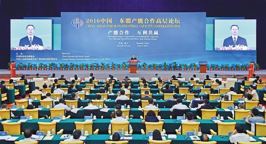 广西日报6月3日讯 由中国经济社会理事会和自治区政协联合主办的2016中国-东盟产能合作高层论坛6月2日在南宁举行。本次论坛以“产能合作、互利共赢”为主题,重点就中国-东盟产业园区、跨境电商平台建设等重要议题进行深入研讨。中共中央书记处书记、全国政协副主席、中国经济社会理事会主席杜青林出席并作主旨讲话。自治区党委书记彭清华致欢迎辞,自治区政协主席陈际瓦出席。