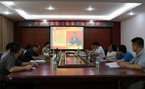 为进一步推进“两学一做”学习教育的开展,6月21日下午,我会邀请中共广西区委党校覃翠生教授作题为《学好党章党规 做一名合格的共产党员》的党章知识讲座。 会党组书记、会长何小玲及领导班子成员和全体干部职工参加。