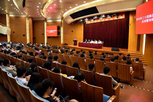9月22日上午,中国贸促会召开2016年二十国集团工商界活动总结暨表彰大会。会议传达了习近平总书记对二十国集团领导人杭州峰会总结表彰工作作出的重要指示,宣读了汪洋副总理对B20峰会总结工作的批示。中国贸促会会长姜增伟、中国贸促会副会长张伟、中国贸促会副会长尹宗华、2016年B20协调人于平出席,中国国际商会秘书长于健龙主持会议。
