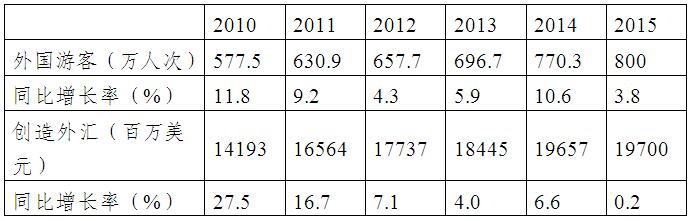 【旅游业】 旅游业是印度政府重点发展产业,也是重要就业部门。近年来,印度入境旅游人数逐年递增,旅游收入不断增加。2012年-2013年度,旅游业收入占GDP比重为6.88%,对全国就业的贡献率为12.36%。主要旅游点有阿格拉、德里、斋浦尔、昌迪加尔、那烂陀、迈索尔、果阿、海德拉巴、特里凡特琅等。2014年印度入境旅游人数约为770万人次,同比增长6.6%,增速超过同期国际平均水平。印度旅游业创造外汇收入196.57亿美元,同比增长11.5%。2015年印度入境旅游人数约为800万人次,同比增长3.8%,创造外汇收入197亿美元,同比增长0.2%。