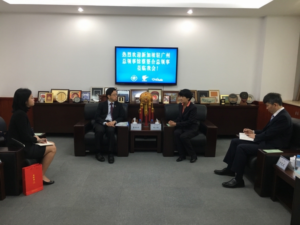 丁元龙副会长,新加坡驻广州总领事馆副领事叶思鸿会见时在座。国际会议部相关人员陪同会见。