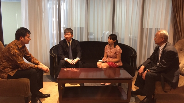 5月4日上午,丁元龙副会长在印尼雅加达拜会中国贸促会驻印尼代表处负责人(代表助理)胡彬冰。