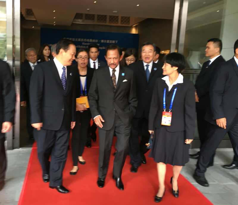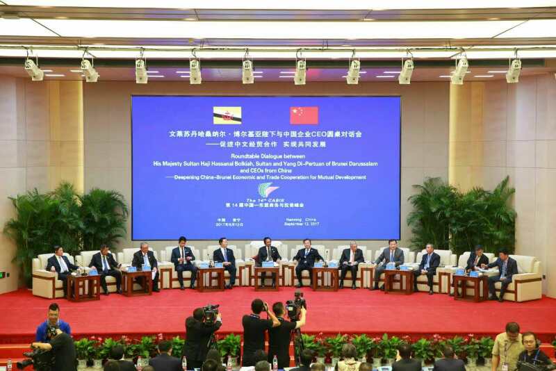 9月12日下午,第14届中国—东盟商务与投资峰会文莱苏丹哈桑纳尔·博尔基亚陛下与中国企业CEO圆桌对话会在南宁成功举办。哈桑纳尔苏丹陛下分别与来自中国银行、浙江恒逸集团有限公司、广西北部湾国际港务集团有限公司、华为技术有限公司的高层领导进行一对一对话,推动双方在金融、化工、港口、通讯基础设施领域的合作。中国—东盟商务与投资峰会组委会主任、中国国际贸易促进委员会会长姜增伟致开幕辞,广西壮族自治区党委书记、自治区人大常委会主任彭清华致欢迎辞。对话会文莱首相府部长兼外交与贸易部第二部长林玉成主持。