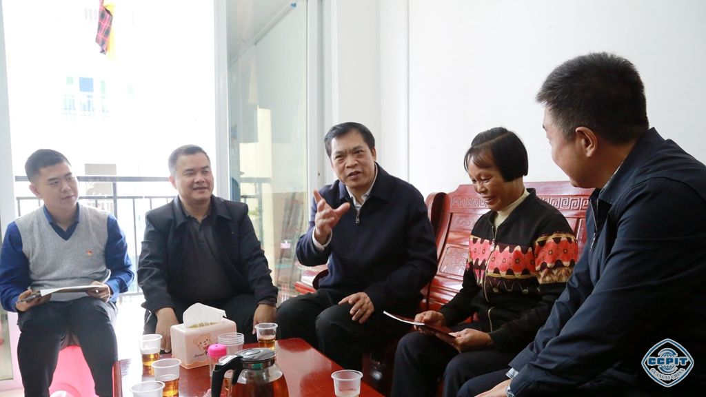 李会长率调研组赴贺街移民搬迁安置点入户调研并慰问南木村“双认定”贫困户,详细了解移民安置户的生产生活情况,鼓励他们通过自己的双手勤劳致富,对贫困户安置工作提出“搬得出、留得住、能发展”的工作要求,并强调要抓好党支部与社区建设。