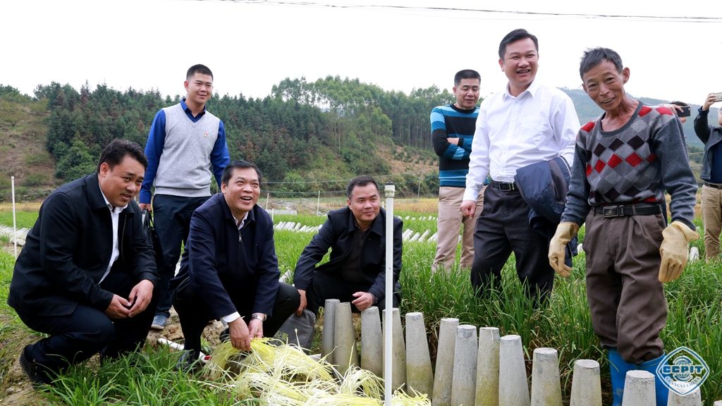 李会长视察了南木村道路硬化项目、考察了南木村百亩蔬菜种植基地,在田间地头与村民亲切交谈,详细了解生产规模、成本、环境等情况,就南木村发展产业提出“生产标准化、规模化,经营组织化,品质生态化、装备机械化、形象品牌化”的发展思路,着力打造粤港澳大湾区绿色菜篮子基地。