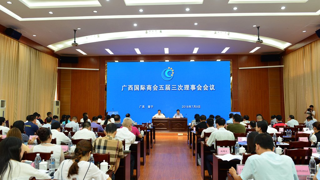 7月9日上午,广西国际商会五届三次理事会会议在南宁召开。自治区政协副主席钱学明出席会议并做了“发挥行业组织作用 助推贸促事业发展”的专题演讲。会上,广西国际商会会长李常官发表讲话,副会长曹英杰传达了姜增伟会长在中国国际商会工作座谈会上的讲话精神并作广西国际商会2017年工作报告,秘书长邓诗军就广西国际商会改革发展方案进行了情况说明。全区各市贸促会领导和商会理事单位代表约160人出席会议。