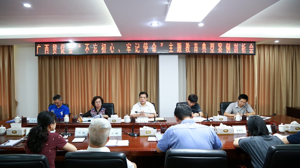根据自治区党委“不忘初心、牢记使命”主题教育的部署要求,2019年8月10日,广西贸促会党组召开“不忘初心、牢记使命”主题教育典型案例剖析会,会领导班子成员参加了会议,全会处级干部列席会议。