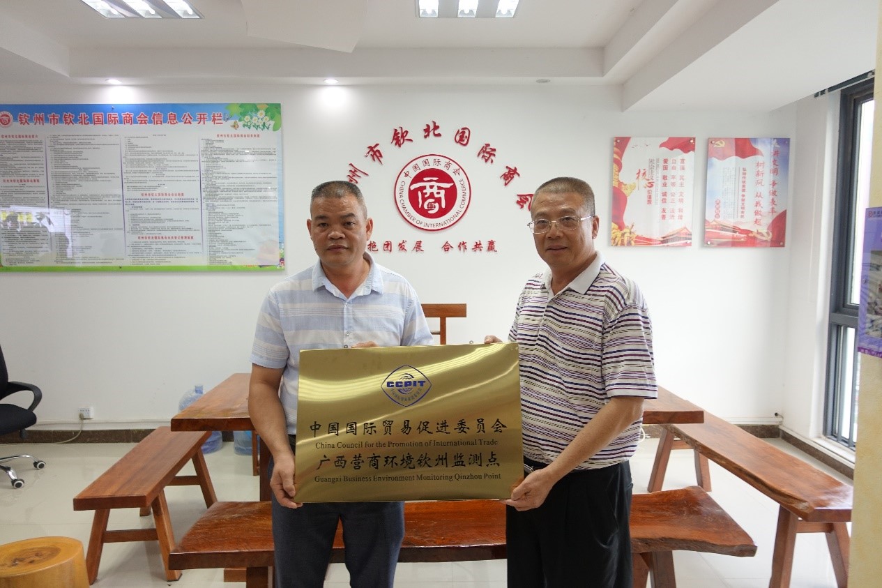 会后,卢森会长将“中国国际贸易促进委员会广西营商环境钦州监测点”牌匾送交钦北国际商会。