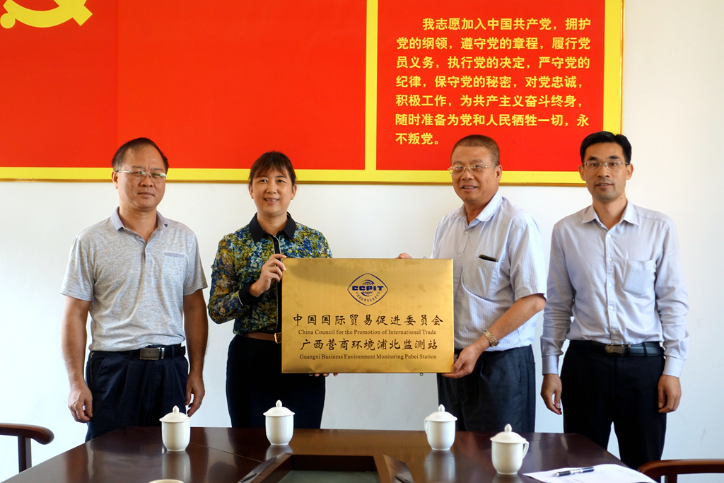 会后,卢森会长为浦北县商务局和监测点企业颁发了中国国际贸易促进委员会广西营商环境浦北监测站、点牌匾。