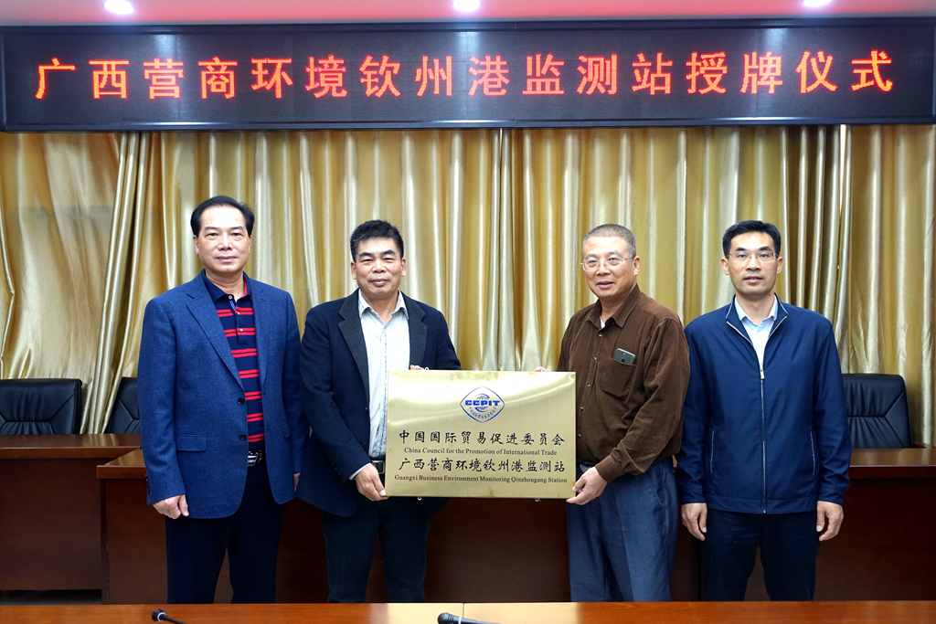 活动结束后,卢森会长为钦州港区经发局和监测点企业颁发了中国国际贸易促进委员会广西营商环境钦州港监测站、点牌匾。