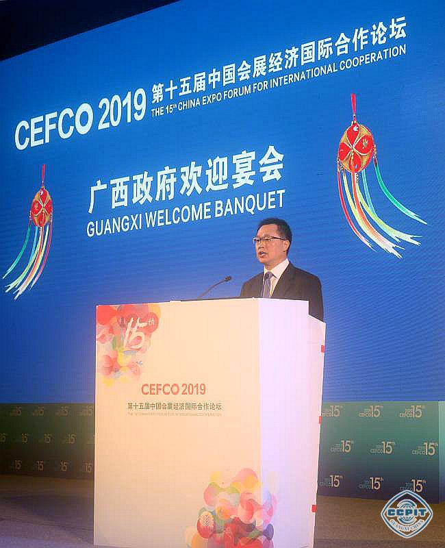 1月10日,中国贸促会副会长卢鹏起在海南省琼海市举行的第十五届中国会展经济国际合作论坛开幕式上宣布,第十六届中国会展经济国际合作论坛(CEFCO)将于2020年1月9日至11日在广西南宁举办。作为下届论坛举办地,自治区人民政府副秘书长杨斌率广西代表团于11日在海南省博鳌亚洲论坛国际会议中心举行广西政府欢迎宴会,向与会各方发出第十六届CEFCO论坛的参会邀请。中国贸促会驻加拿大代表处总代表胡凡、国际展览业协会首席执行官及执行总经理贺庭凯、国际展览与项目协会主席汤姆•新德里奇、独立组展商协会执行理事大卫•奥伦等中外重要嘉宾出席欢迎宴会,广西贸促会副会长李旭香主持。