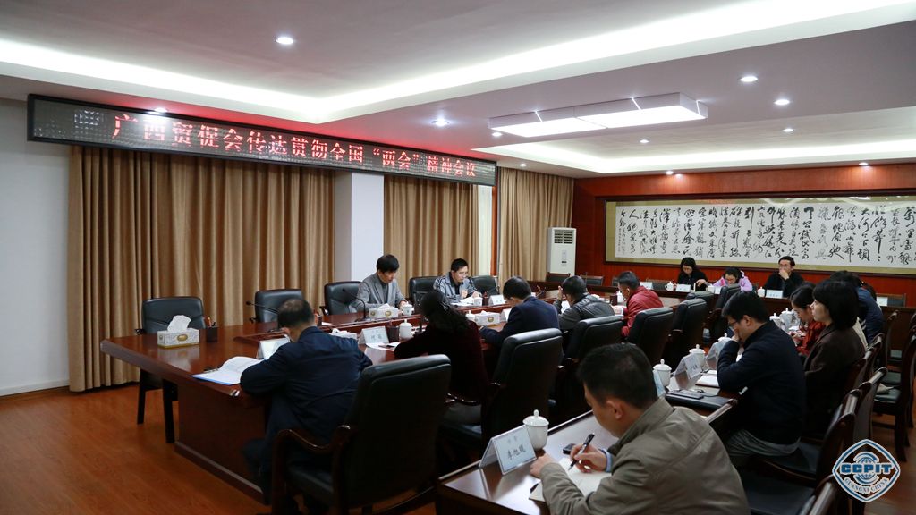 3月18日,我会召开传达贯彻全国“两会”精神会议。丁元龙副会长主持会议并传达习近平总书记听取广西工作汇报时的重要讲话精神和李克强总理参加广西代表团审议时的讲话精神,许多会长助理传达全国政协十三届二次会议、十三届全国人大二次会议精神。我会全体干部职工参加了会议。