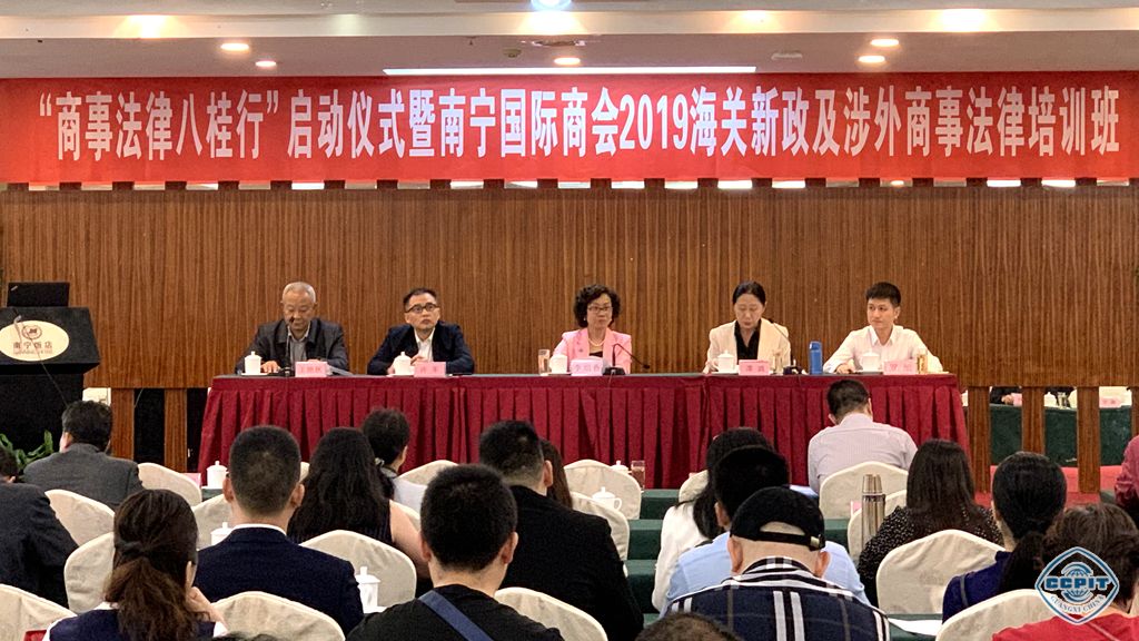 “商事法律八桂行”启动仪式暨首站活动在南宁市举行,结合海关和检验检疫合并后的新政及企业“走出去”法律风险方面需求,同时举办“‘商事法律八桂行’启动仪式暨2019海关新政及涉外商事法律培训班”,服务广西、南宁市企业融入 “一带一路”和西部陆海新通道建设。南宁市贸促会谭漓会长、广西律师协会罗旭副会长出席活动并致辞,广西贸促会李旭香副会长宣布仪式启动。广西贸促会、南宁市贸促会、有关企业和媒体代表参加活动。