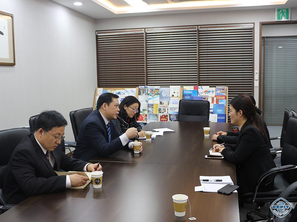 3月21日-22日,李常官会长访问韩国期间,与韩国投资贸易振兴公社、中日韩三国合作秘书处、韩国中华总商会、中国贸促会驻韩国代表处等4家机构约11人举行座谈。