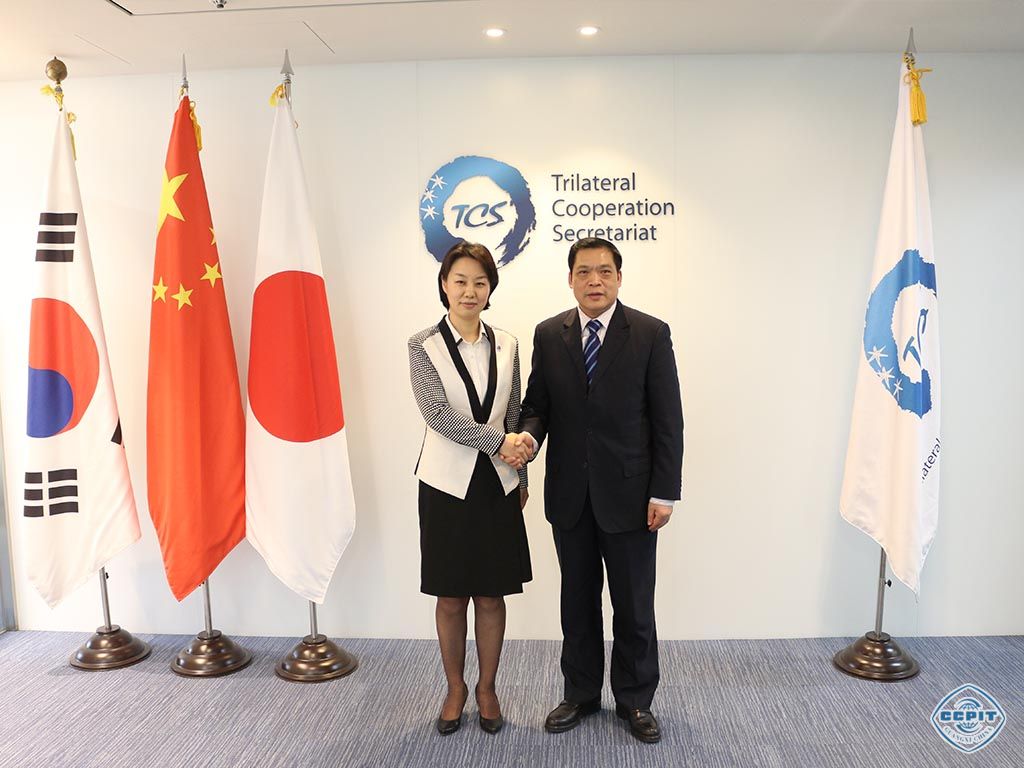3月22日,李常官会长拜访中日韩三国合作秘书处副秘书长韩梅