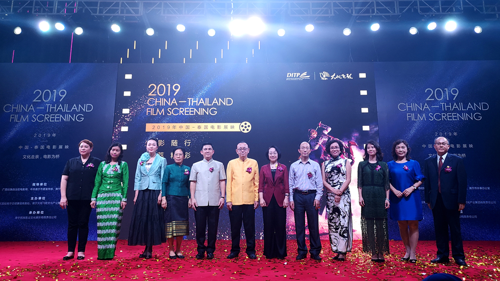 2019中国—泰国电影展映活动由泰王国商业部国际贸易促进司南宁办事处暨泰王国驻南宁总领事馆商务处、南宁大地飞歌文化产业集团有限责任公司共同主办,南宁民族影业文化娱乐有限责任公司承办。泰王国驻南宁总领事馆陈世光商务领事代表主办方致辞,表示希望通过本次活动,将更多优质泰国电影资源引入中国市场,通过文化交流的形式,推动泰国与中国在经贸领域更广泛深入的合作。泰王国驻南宁总领事馆蔡乐∙蓬蒂窝拉卫总领事,南宁市委常委、副市长何颖等嘉宾共同出席活动。
