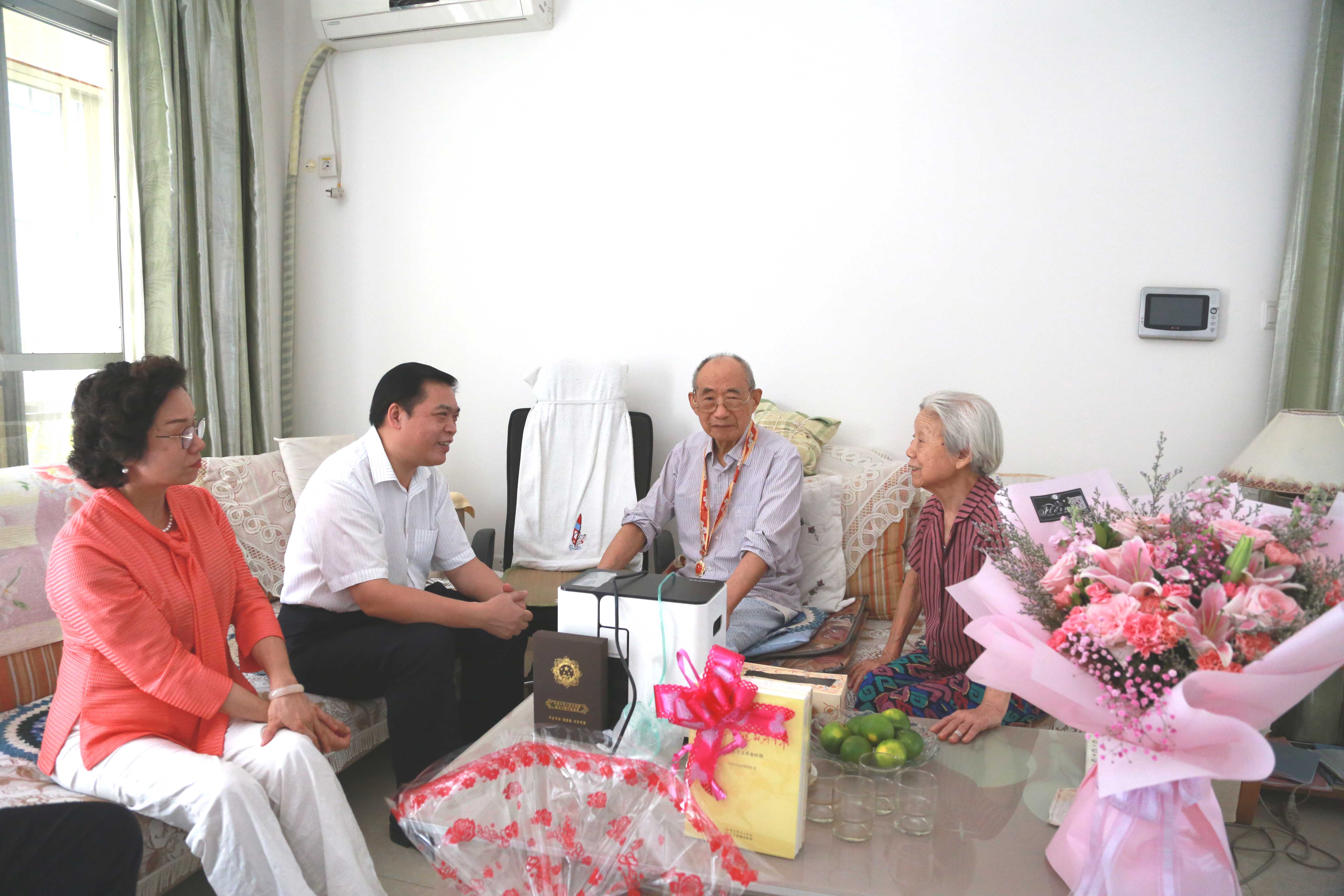丁元龙副会长、许多助理前往慰问了1947年入伍、先后参加过辽沈战役和平津战役、为党和人民的事业做过贡献的离休老干部霍玺,向他表达了敬意并致以问候。丁元龙说,我们今天的幸福生活,是无数像霍老这样的革命先辈浴血奋战、艰苦奋斗换来的,我们要铭记革命前辈作出的巨大贡献,要不忘初心,牢记使命,继承革命传统、发扬革命精神,努力为广西经济社会高质量发展作出新的贡献。
